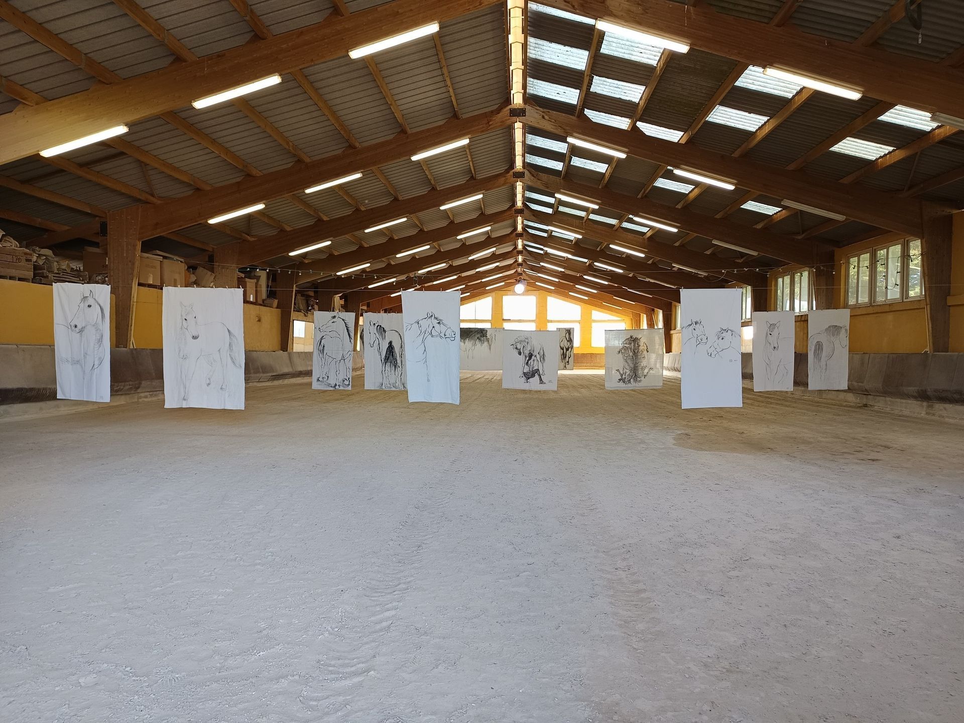 Tout naturellement, manèges et boxes ont accueilli les créations : dessins, peintures, film, photos.